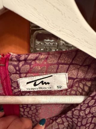 Elegante blusa de cuerpo y falda en tonos azul y morado. Ideal para ocasiones especiales. - Diseño con solapa satinada. - Manga larga. - Corte recto.