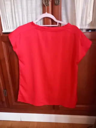 Blusa de manga corta en un llamativo color coral. Perfecta para un look casual y fresco. - Diseño de manga corta. - Cuello redondo.