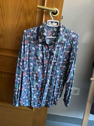 Camisa de manga larga con estampado floral. - Diseño con hojas y flores. - Cuello camisero. - Cierre de botones.