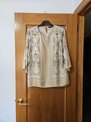 Blusa de Zara con un llamativo estampado abstracto. - Confeccionada en algodón. - Diseño con cuello redondo y botones. - Mangas cortas abullonadas.