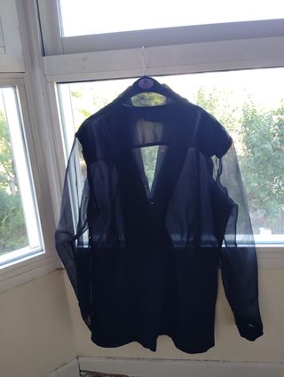 Blusa negra semitransparente. solo se ha usado una vez. incluye un fondo de tirantes para que nonse transaparente