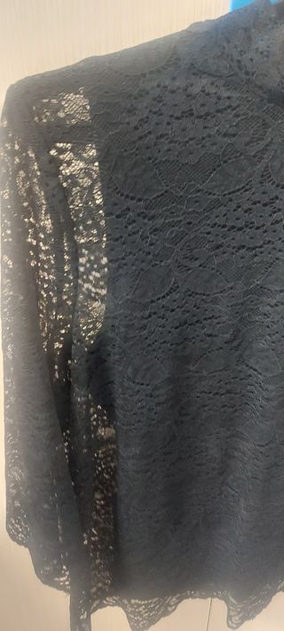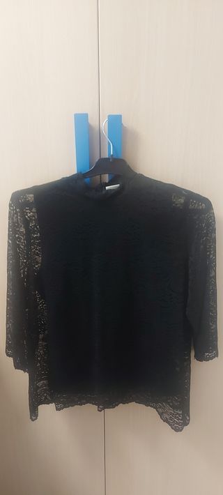 Blusa encaje negra forrada,mangas 3/4 , transparentes,sin uso