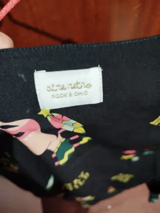 Preciosa colección de ropa que incluye una falda negra con lunares blancos Shana talla Xs, una blusa blanca de encaje local talla S y un par de calcetines con forma de donut. La falda es de corte midi y tiene una abertura lateral. La blusa es de manga corta y tiene un diseño delicado. Los calcetines son de color rosa y tienen un diseño divertido. - Falda negra con lunares blancos - Camisa blanca de encaje - Calcetines con forma de donut