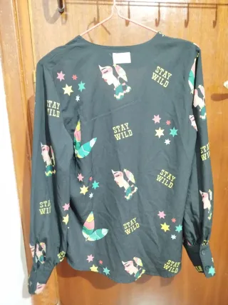 Bonita blusa negra aterciopelada con brillo. Es un poco elástica, lo que la hace muy cómoda. Tienes las medidas en las fotos📸📸. Nueva sin etiquetas. Ideal para fiestas navideñas ....