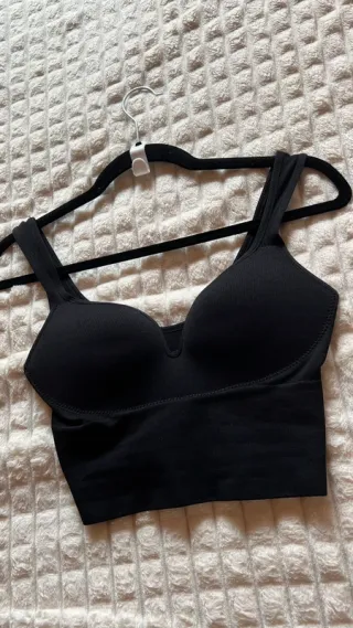 Top elástico de corte ajustado. Realza el pecho Buena calidad Nuevo Sport bra Talla XS-S Sujetador deportivo Push up top Negro Top tirantes Elástico - Tejido suave y elástico. - Diseño con escote pronunciado. - Tirantes finos.