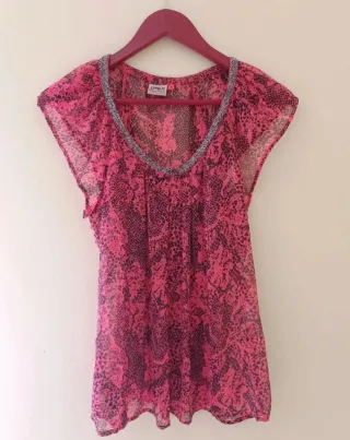Blusa ONLY cuello pedrería rosa y negro Talla M