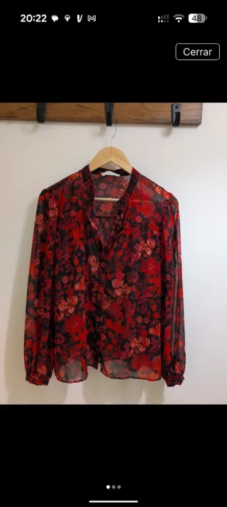Camisa semitransparente floral roja y negra