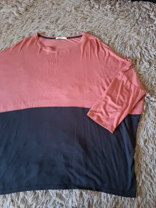 Blusa de diseño moderno con dos colores. - Corte holgado. - Mangas amplias.