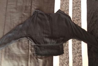 Blusa top de encaje, negra. Goma en la cintura. Talla única, estira. Se puede poner al hombro, tiene goma en la parte superior también. Sin estrenar.