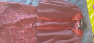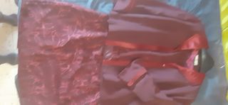 Fabricado en Francia, comprado en Touareg. Talla unica, hecho de Nylon. Tiene pequeños bordados con hilos morados y lentejuelas. Usado solo una vez para una boda. Tiene una marga larga vaporosa y otra de tiranta. Tiene forro para que no se transparente