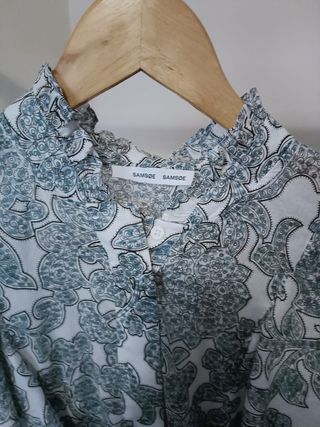 Elegante blusa de la marca Samsoe Samsoe con un estampado llamativo. Marca danesa. Medidaa en las fotos