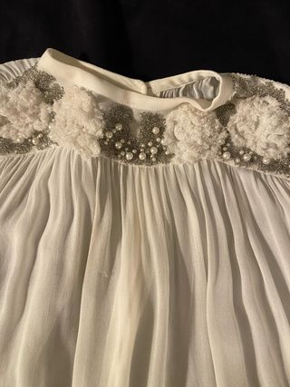 Elegante blusa blanca de Zara, perfecta para añadir un toque de brillo a tu armario. Conserva su etiqueta original. - Cuello adornado con cristales. - Puños de las mangas con detalles de cristales. - Tejido ligero y fluido.