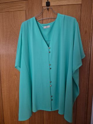 Blusa de manga corta con un diseño elegante y favorecedor. marca Zizzi, talla L muy amplia. Está casi a estrenar y con medidas a continuación: Mide de sisa a sisa 78 cm. Mide de largo 75 cm. No puedo poner la talla de la etiqueta porque yo la compré para talla 52 española/francesa y queda muy grande. Es una 54/56. VER MEDIDAS