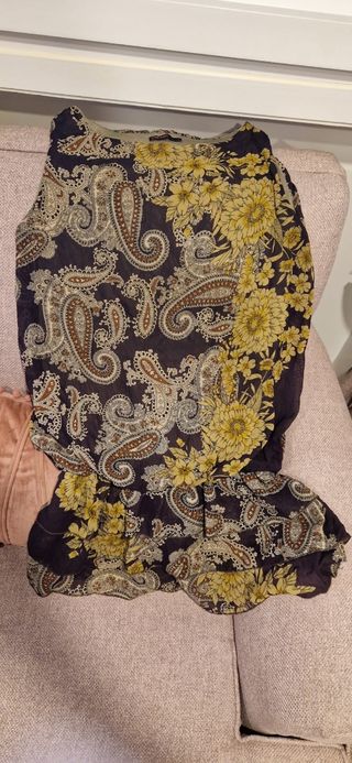 Vestido corto o blusa de Zara con un llamativo estampado. - Tejido de poliéster, algodón, viscosa y elastano. - Diseño de cuello redondo. - Mangas abullonadas. 🔅Largo 71cm.🔅Axila 48cm.