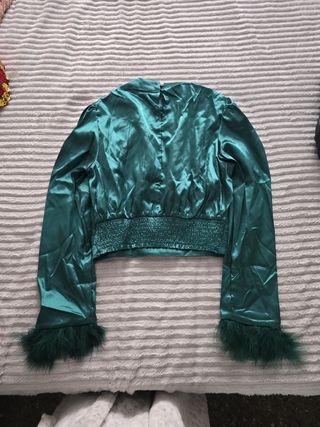 Elegante 👚 en color fucsia. Mangas3/4 acabadas en plumas y perlas, que le da el toque de elegancia a la prenda. Cierre a la espalda con botón de perla y pequeña abertura. .MEDIDAS 📏 📐 SISA 51-52cm LARGO DELANTE 61CM LARGO DETRAS 65 CM COMPOSICIÓN 🧵 🪡 100% POLIESTER