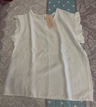 Top sin mangas de viscosa. Es la talla 36 pero es muy amplio al tener frunces, da mucha talla.