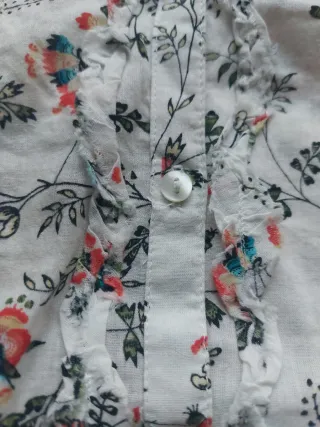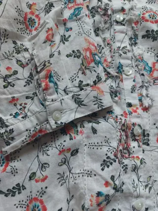 Blusa estampaas 100% algodón con manga 3/4, tiene un pequeño bordado en msngas y botonera ( adjunto fotografías). Marca talla 40. Esta en perfecto estado, según muestro en las fotografías, la use muy poco. Medidas: Pecho 49cm Largo 67cm #blusabordada #camisabordada #bordado #cachecache #blusaestampada #camisaesrampada #blusacachecache #camisacachecache