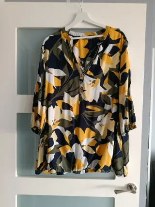 Blusa nueva con un bonito estampado de rombos talla 48. - Cuello con abertura. - Bajo redondeado.