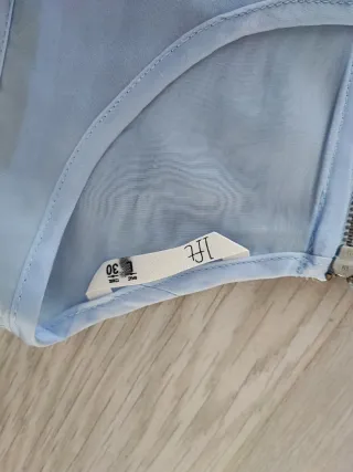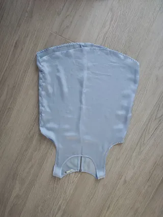 Elegante blusa Bershka con un diseño llamativo. - Cuerpo de manga larga. - Detalle de lentejuelas y pedrería en plateado. - Transparencias y escote en la espalda con lazada.