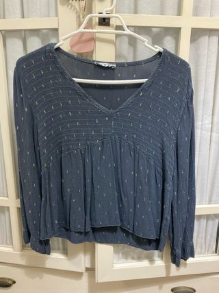 Blusa de color azul, tejido ligero, muy cómoda. - Cierre de cremallera en la parte trasera. - Corte holgado y favorecedor. - Tejido suave al tacto. Talla la L, pero es mas estrechita