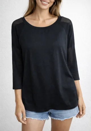 Blusa negra manga 3/4 con detalle cremallera