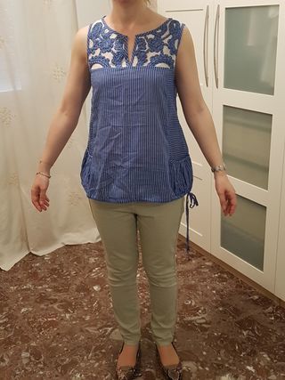 Como nueva. Detalle de bordado floral en el pecho. Tejido ligero y fresco