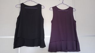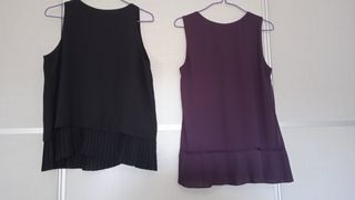 Dos blusas de mujer en perfecto estado y muy poco uso. Tienen forro las dos. En la parte baja tienen un volante plisado que las hace más bonitas. Quedan preciosas. Talla S. Color negro y otra color morado. Marca Massimo Dutti.