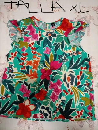 Preciosa blusa de la marca Pimkie, talla M. Es de color multicolor con estampado floral. La tela es vaporosa y tiene un corte favorecedor. - Cierre de botones - Sin mangas - Escote clásico
