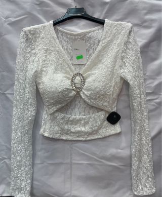 Blusa encaje blanco con pedrería talla S/M