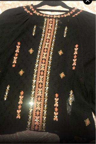Blusa semitransparente bordado delante, cuello, y puños. Abotinada al cuello. Plumeti. Sin estrenar. Boho Talla L (es M/L) Puesta 1 vez Mando fotos de modelo de Zara por privado