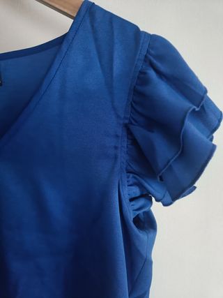 blusa shein de manga corta con volantes, azul eléctrico talla M, sin estrenar