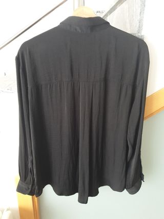 Blusa Bimani, tejido sin arrugas. Botones en frontal y puños. Está sin prácticamente uso pero tiene un ligero roce en la parte delantera, abajo del todo. Puesta es prácticamente inapreciable (se aprecia en última imagen). Medidas: - Sisa: 63cm - Hombros: 41cm - Largo: 61cm