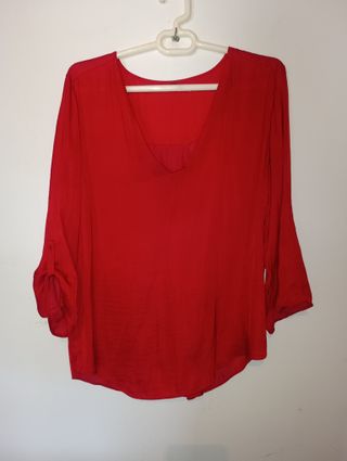 Blusa roja · Talla 44 · Cuello pico · Mangas 3/4
