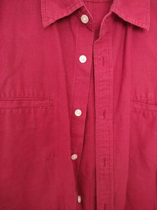 Blusa / camisa de manga corta en rojo de la marca Springfield. Muy buen estado. Bolsillo y botones para cierre frontal. Unisex. Manga corta, tipo oversize. Talla XL. COMPOSICIÓN: 55% RAMIO 45% ALGODÓN