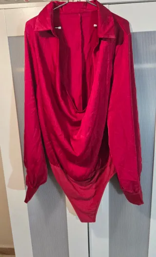 Blusa body rojo satinado