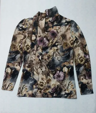 Bonita blusa con un estampado floral vibrante. Perfecta para añadir un toque de color a tu armario. - Diseño de manga larga. - Cuello redondo con abertura. - Estampado floral detallado.