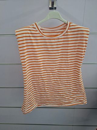 Blusa sin mangas. Cuello redondo y detalle delantero. Color de fondo blanco con estampado en relieve "dibujado". Talla M. Medidas en la última foto. También de sisa hasta abajo son unos 37 cm. Marca: Sfera Estado: muy bien Precio: 7€ #camiseta