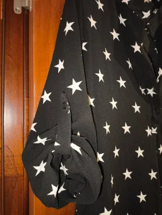 Blusa con un divertido estampado de estrellas blancas sobre fondo negro. Ideal para un look casual. - Diseño de manga larga que se pueden recoger con botones - Cuello maho - botones delanteros hasta media altura