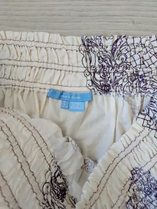 Top blanco de algodón, con detalles de bordado y puntilla. - Escote hombros caídos. - Cintura elástica. - Talla S - Buen estado.