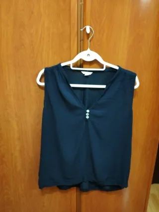 Blusa elegante y versátil, perfecta para cualquier ocasión, de Springfield, talla L. - Diseño sin mangas. - Detalle de tres botones en la parte delantera. - Escote en V. En perfecto estado. Tiene muy poco uso. Medidas: ancho de pecho 50 cm, ancho de la parte baja 56 cm, largo desde el hombro 62 cm. Hago envíos. En persona se entrega en la puerta del Domino's pizza de Avda Puente del Pilar.