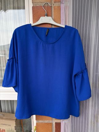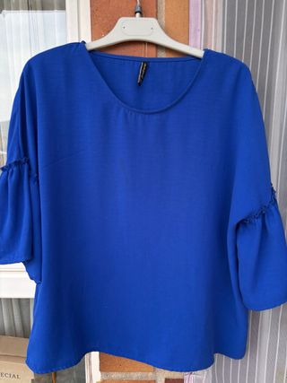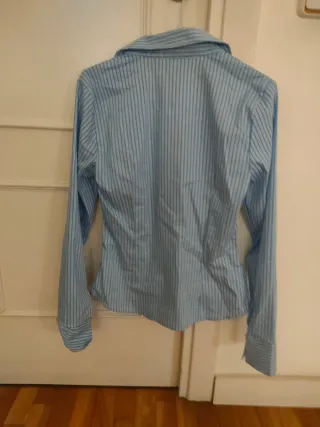 Blusa de Stradivarius en color azul.entallada en la espalda con goma elástica. Usada en un par de ocasiones - Manga larga. - Cuello camisero. - Cierre de botones.