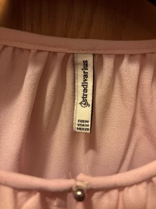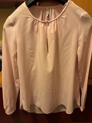 Blusa de Stradivarius en color rosa y manga larga. Presenta un diseño con cuello redondo y una abertura central con un pequeño detalle. - Cuello redondo con detalle. - Manga larga. - Abertura frontal.