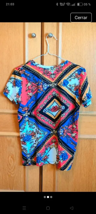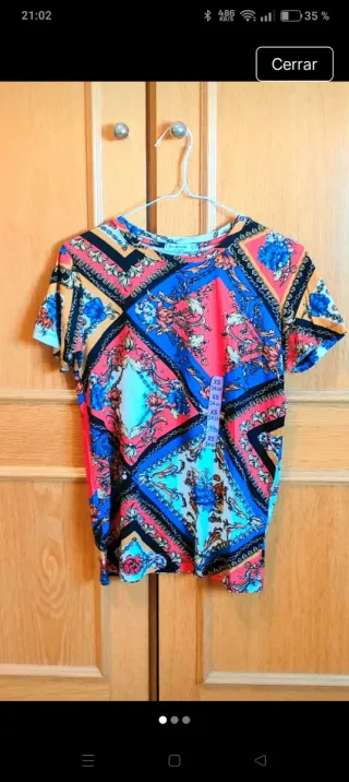 Blusa de Stradivarius con un llamativo estampado. - Diseño con múltiples colores y patrones. - Manga corta.