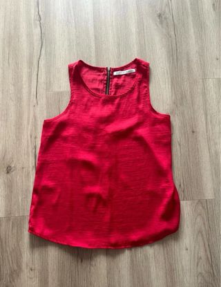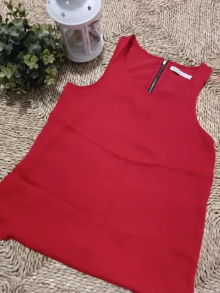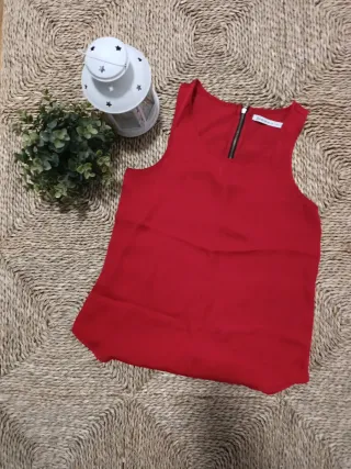 Blusa sin mangas de color rojo con cremallera. - Cremallera frontal. - Diseño sin mangas.