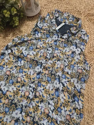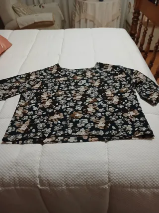 Blusa con estampado floral y manga larga. - Diseño con escote de pico y cordones. - Estampado de flores y ramas en tonos tierra y verdes. - Tejido ligero y fluido. Hago envíos o entrego en Alicante, zona pla de la vallonga, no me desplazo