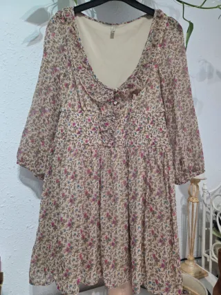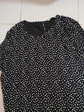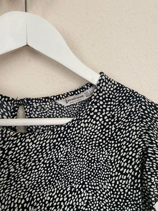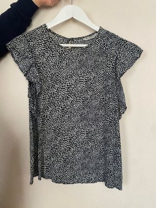 Blusa de Stradivarius con un estampado llamativo. - Diseño con estampado de puntos. - Mangas cortas con volantes. - Cuello redondo. - Talla real L, talla pequeño (corresponde a una M habitual).