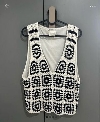 Top de crochet hecho a mano, una pieza única de edición limitada. - Diseño de ganchillo con motivos geométricos. - Acabado con borde festoneado.