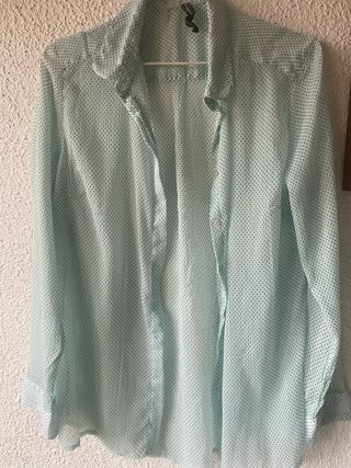 Camisa de manga larga con un estampado de pequeños puntos en contraste. Es una prenda ligera y fluida. - Diseño con cuello camisero. - Cierre de botones en la parte delantera. - Puños abotonados. - Semi- transparente