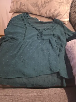 Blusa verde botella, con tejido elástico, talla M de Stradivarius. En perfecto estado. Entrega en mano en Palencia o Burgos, resto de España por envío
