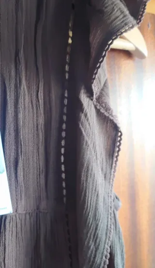 Blusa estilo boho en color marrón, sin estrenar. - Diseño con textura. - Detalles de puntilla en mangas y laterales. - Cuello redondo. Encaje en detalles